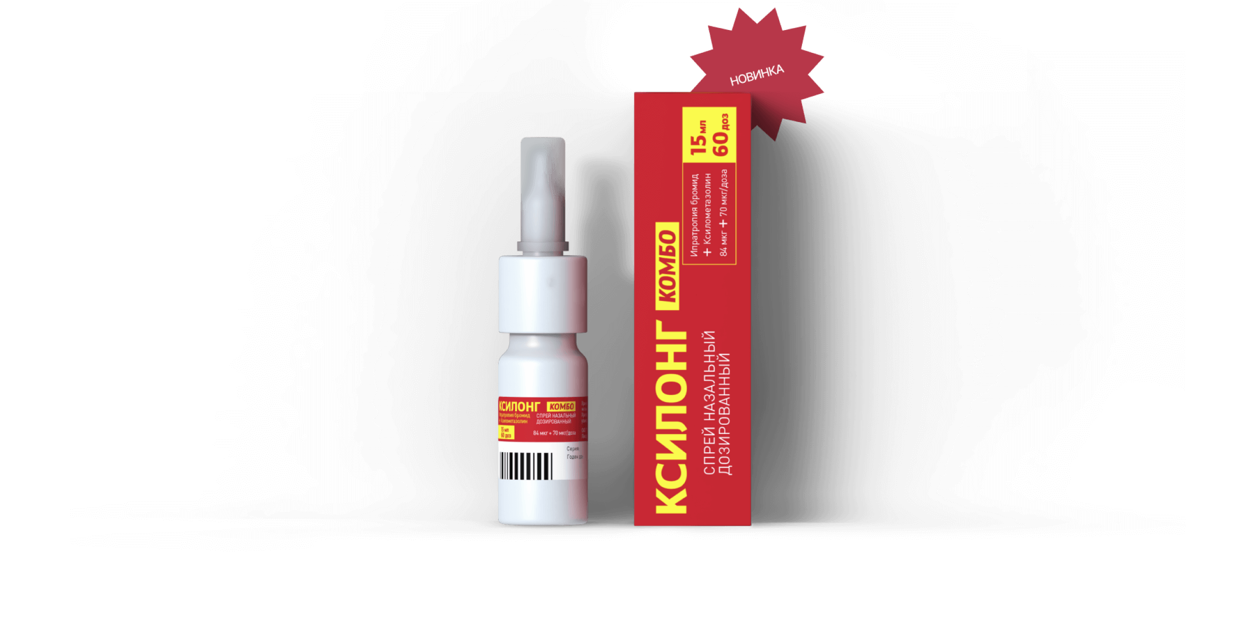 Одно впрыскивание препарата КСИЛОНГ Комбо содержит около 70 мкг ксилометазолина гидрохлорида и 84 мкг ипратропия бромида.